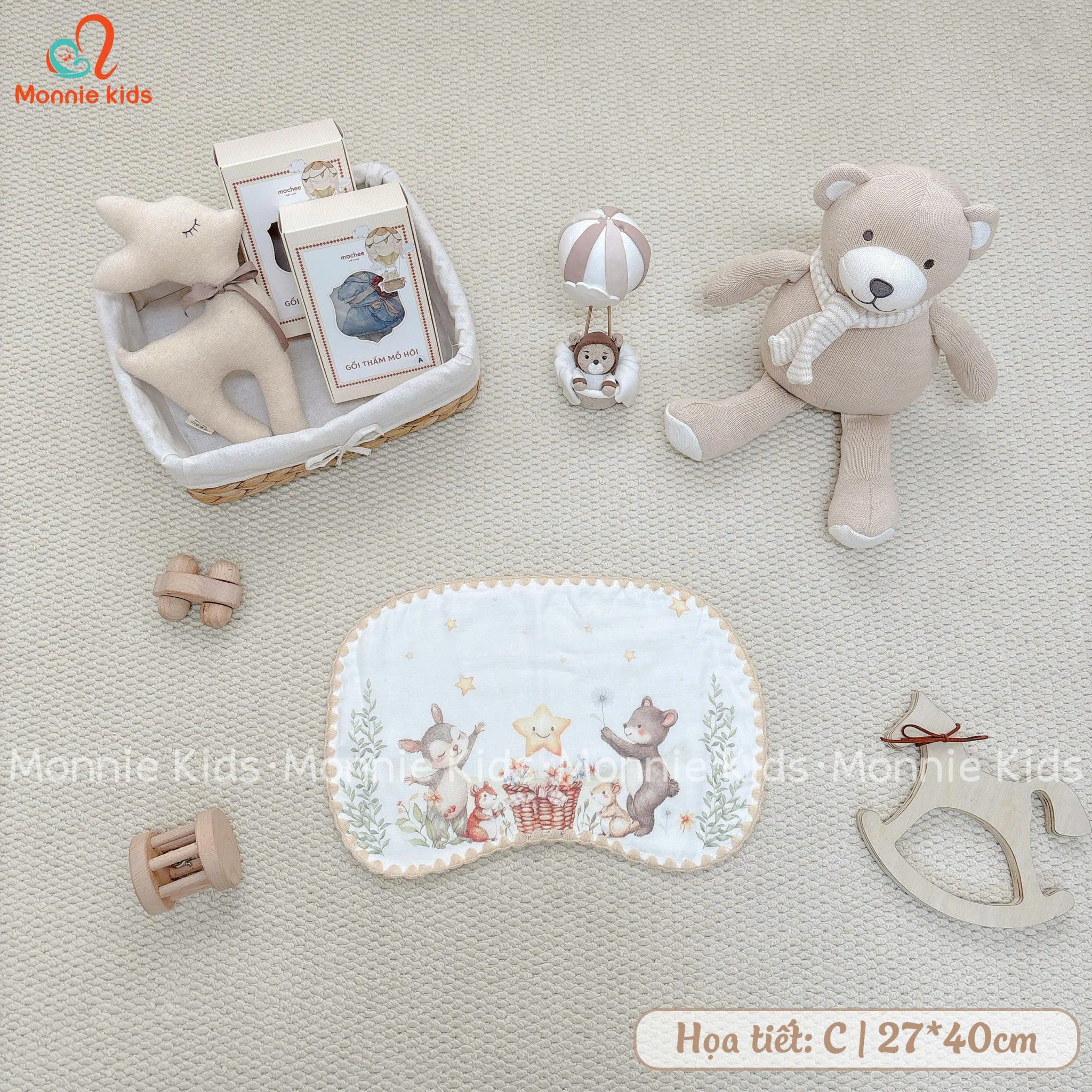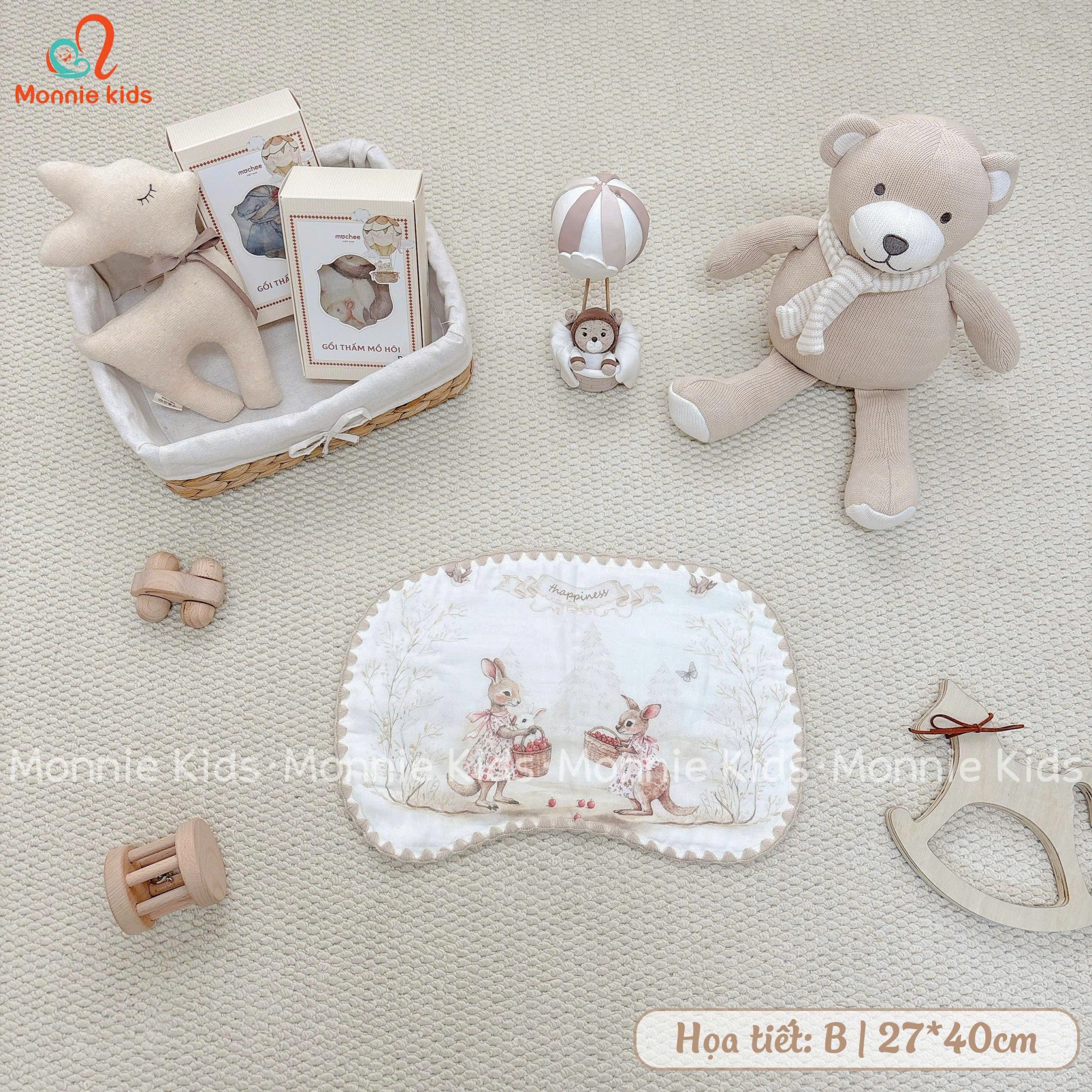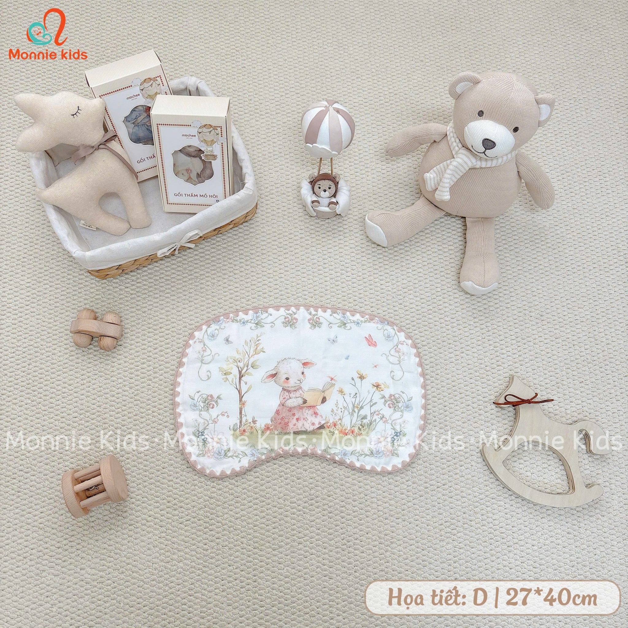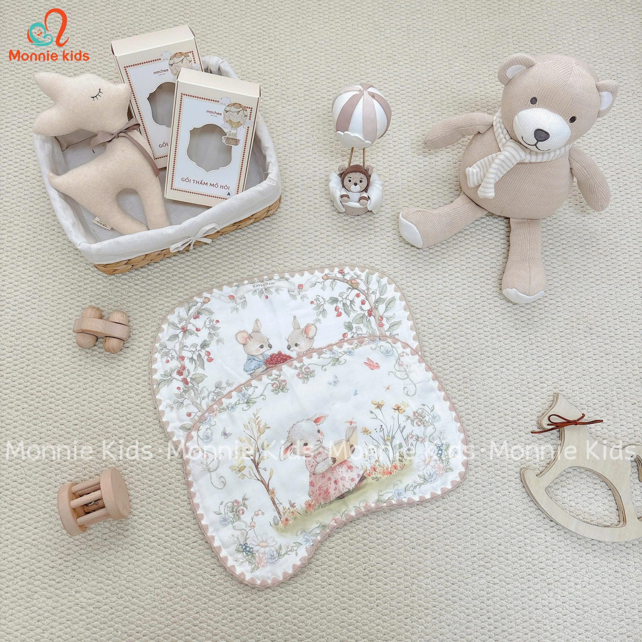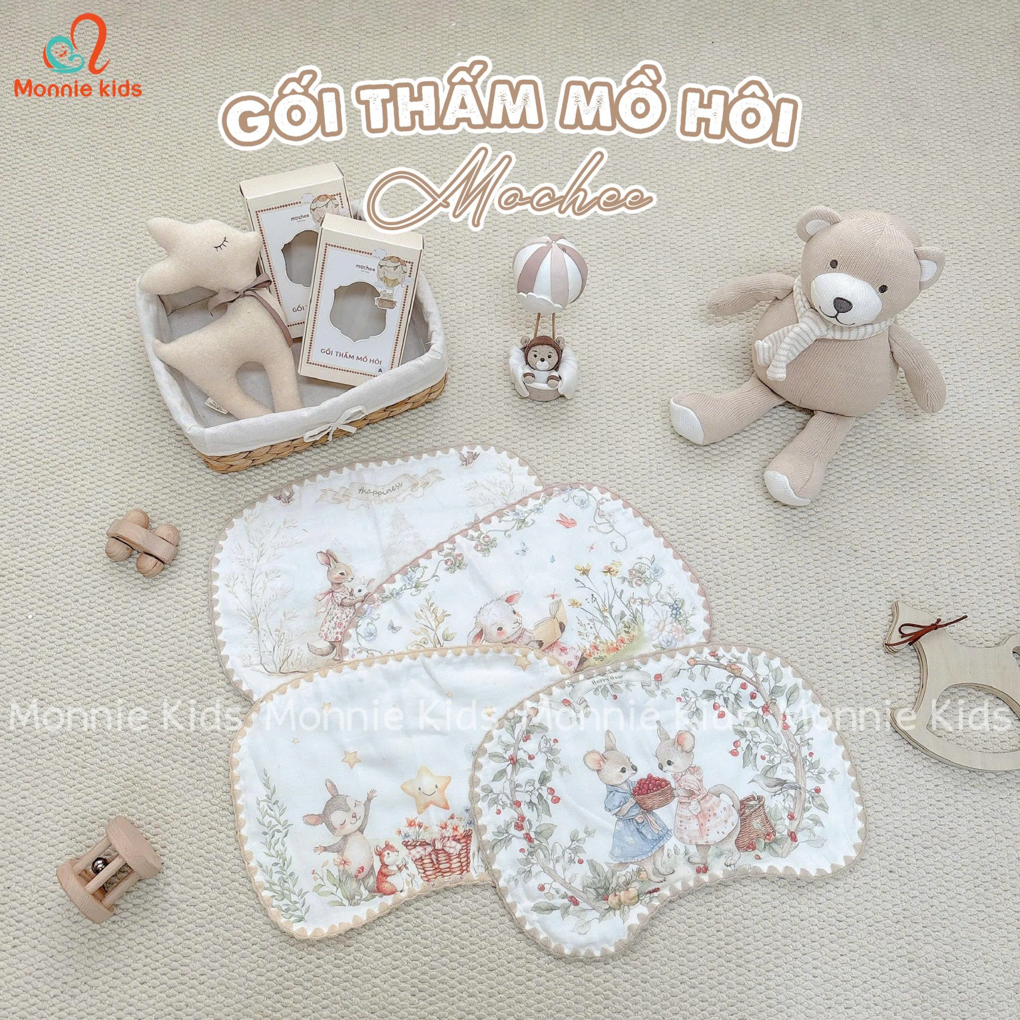 – Gối Mochee bằng chất liệu vải xô mát mẻ, thấm hút mồ hôi giúp bé giảm mồ hôi trộm