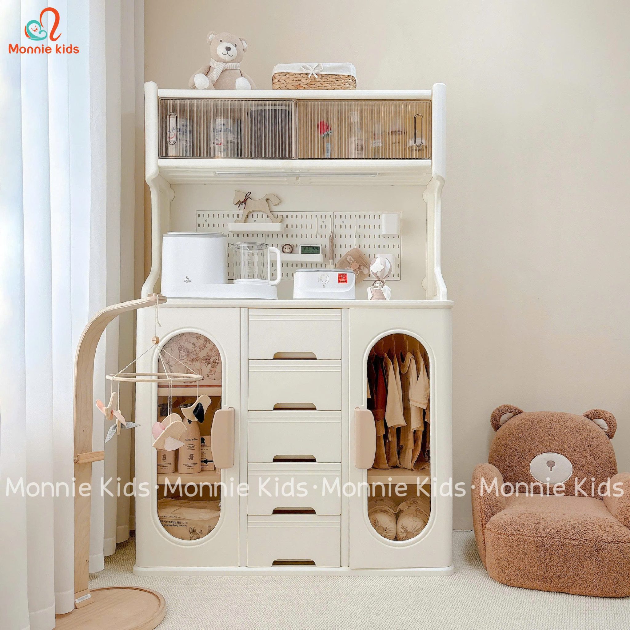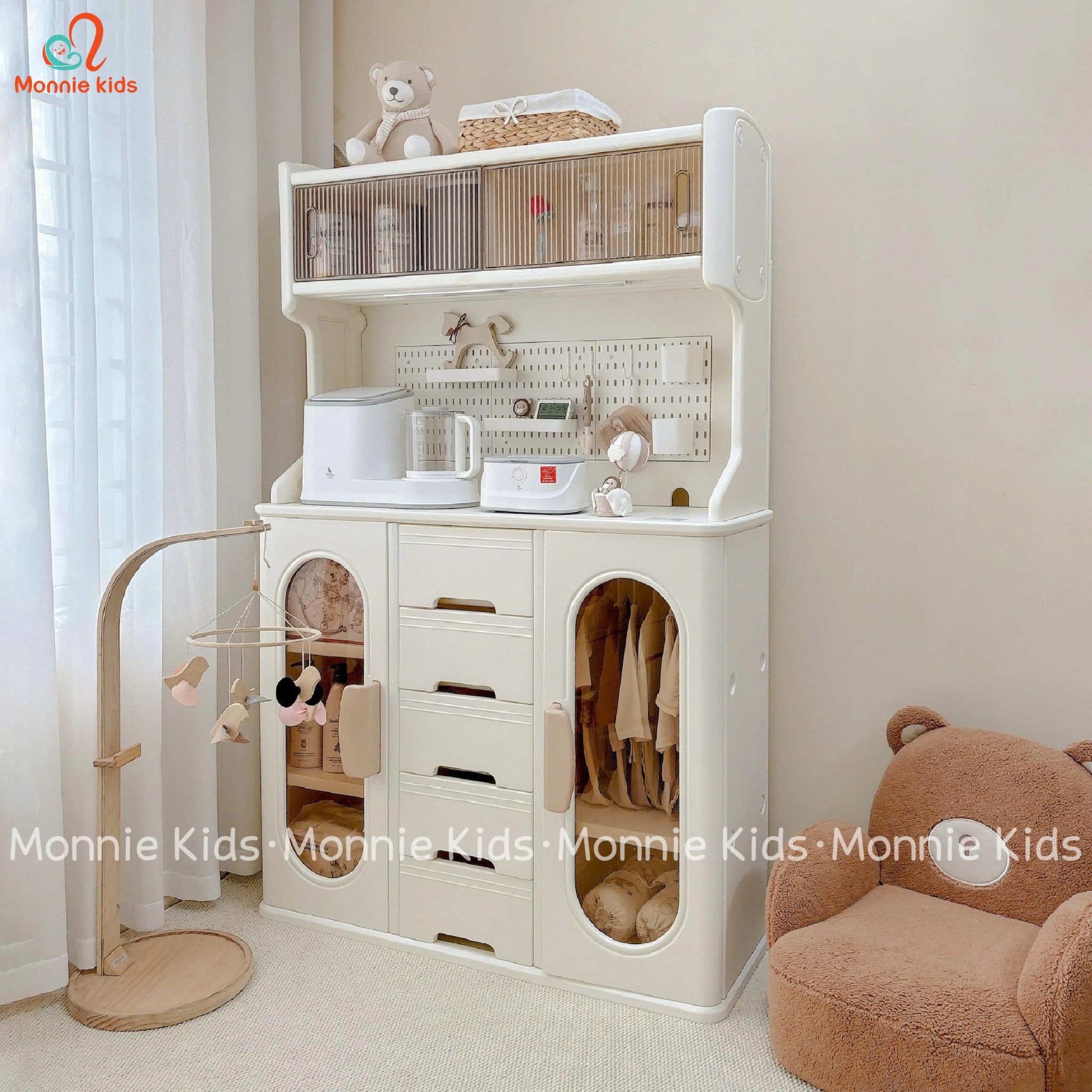 Tủ gỗ với thiết kế vô cùng xinh xắn, màu sắc hợp với mọi không gian trong nhà