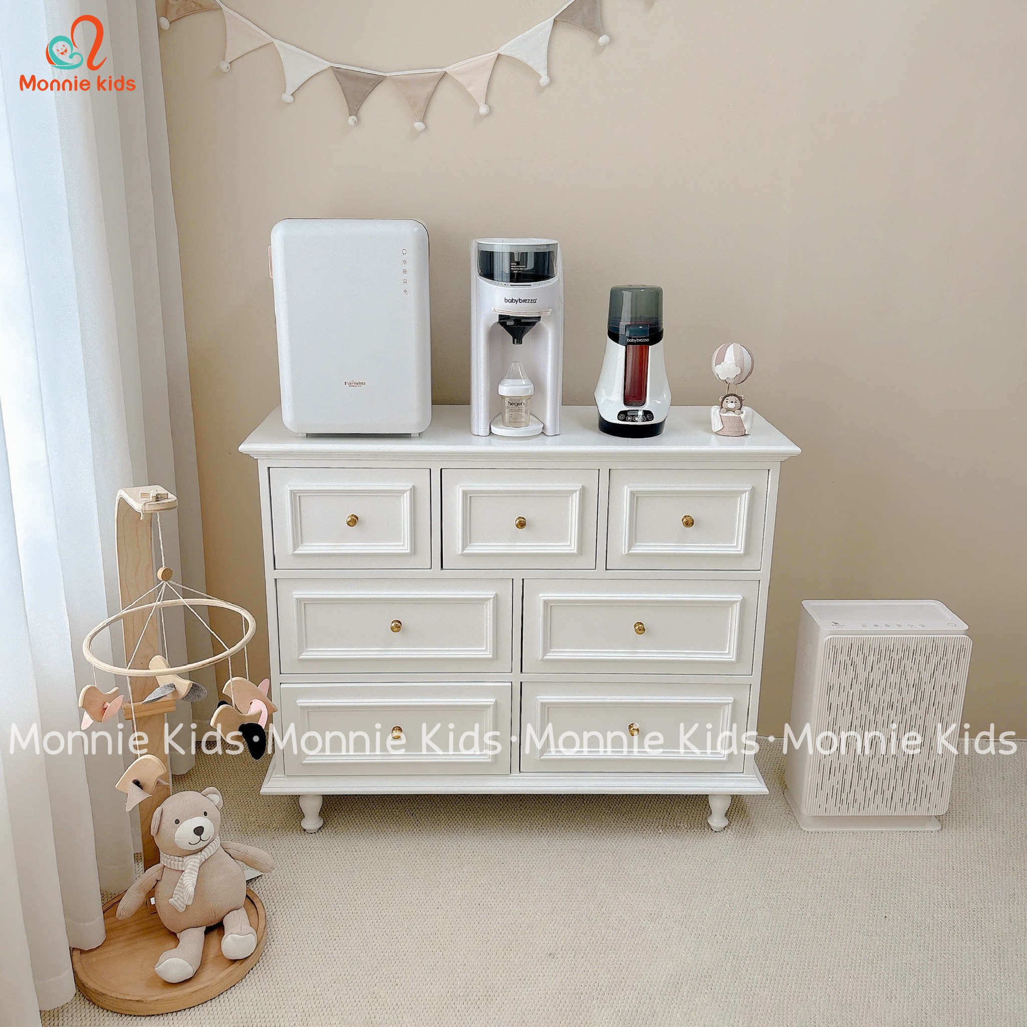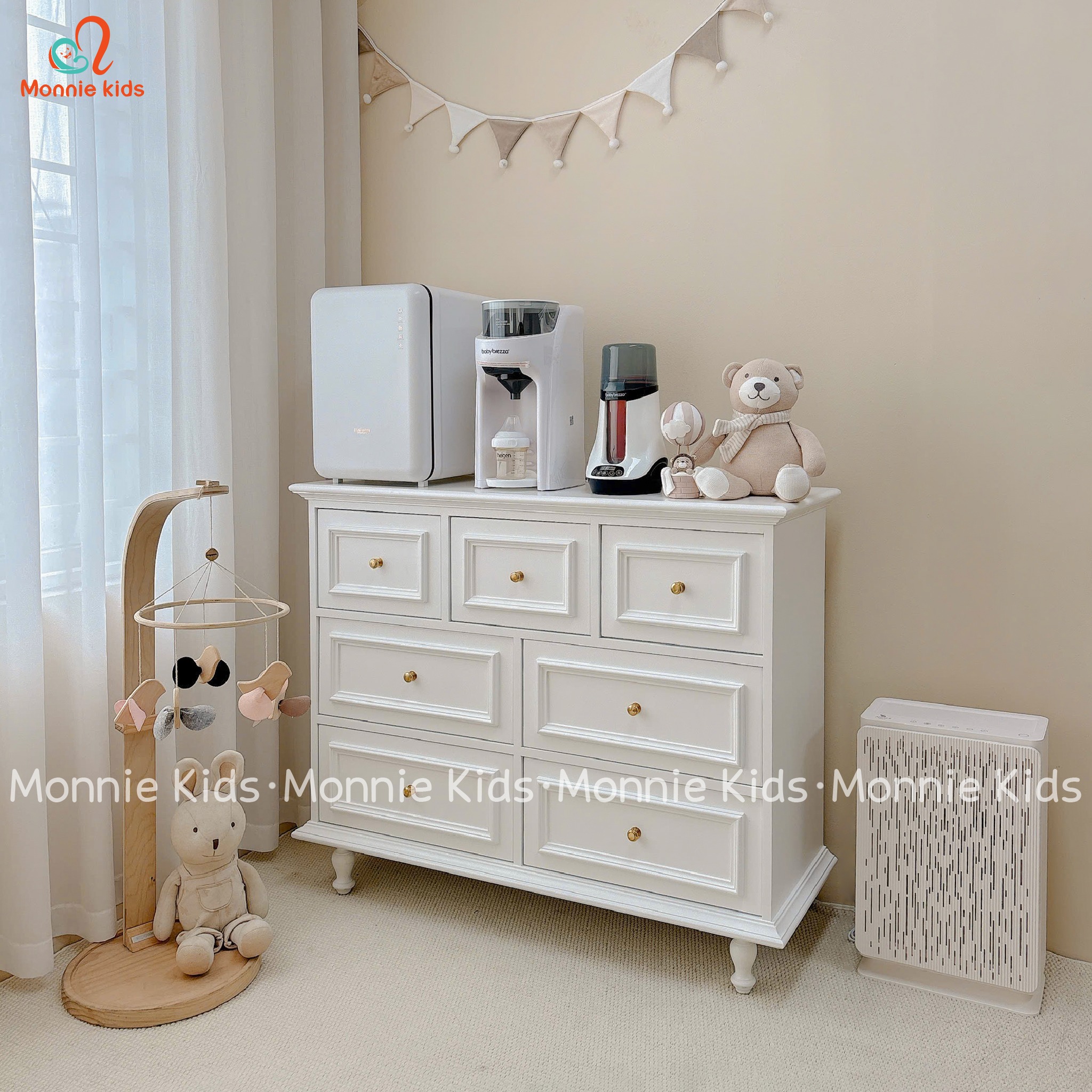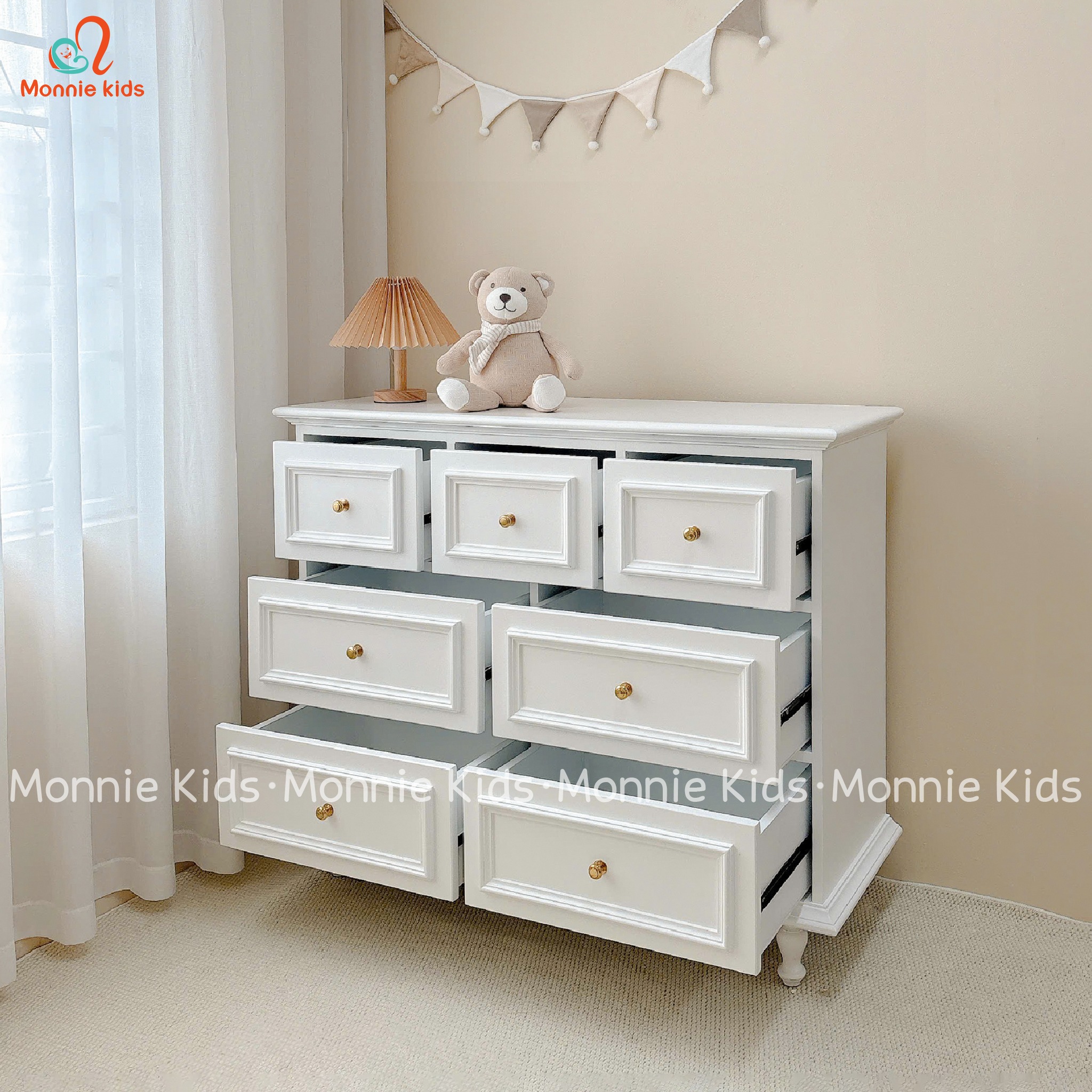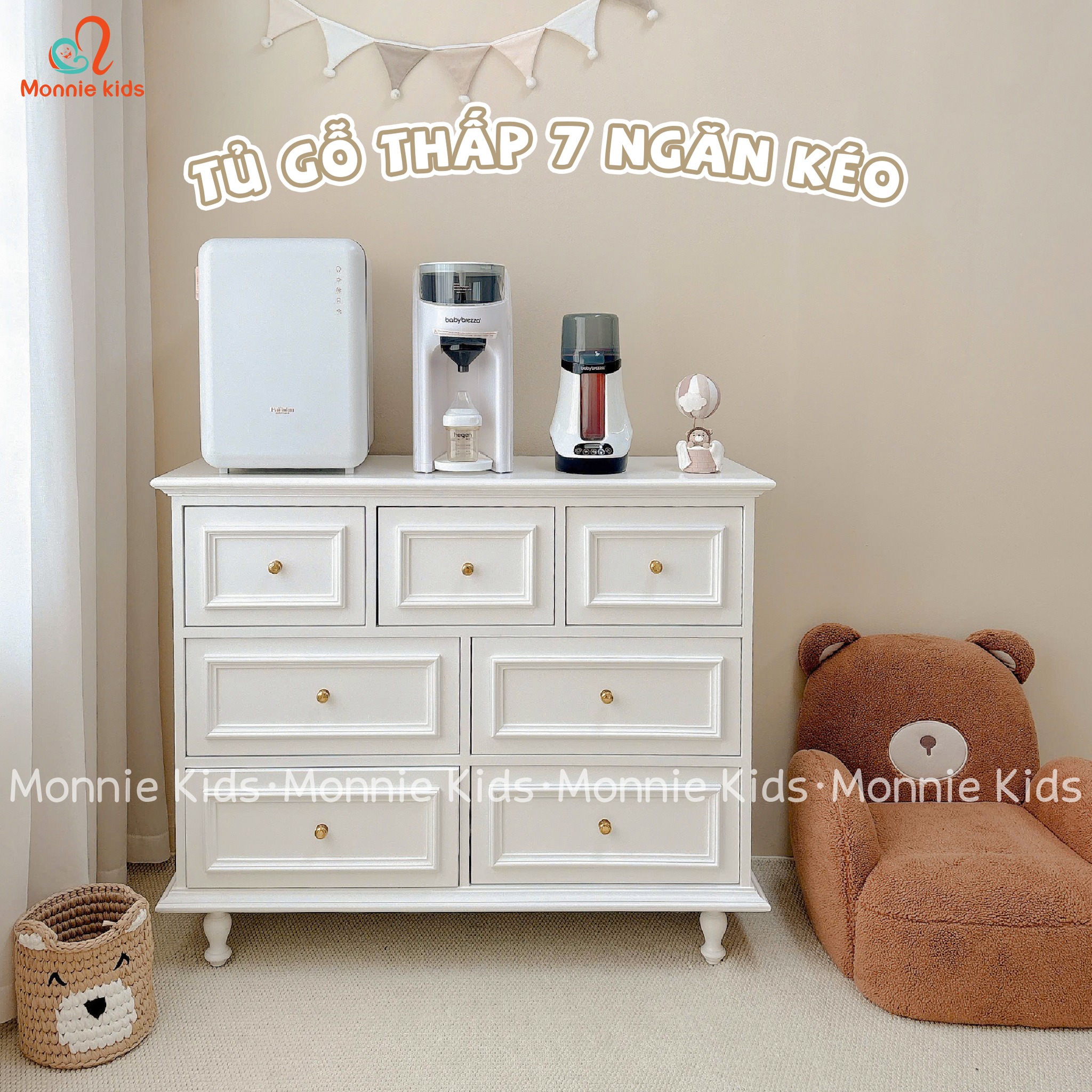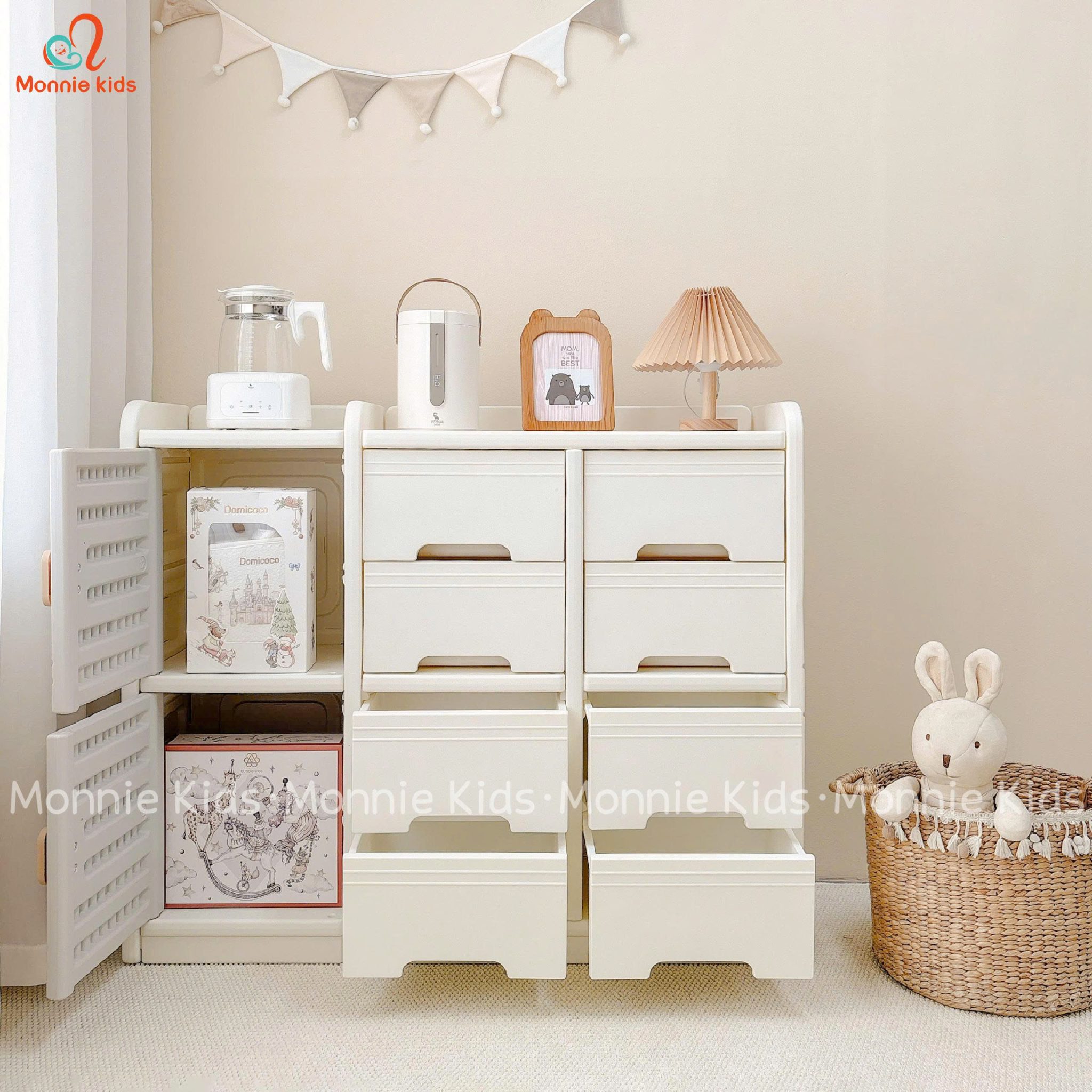 Tủ quần áo cho bé siêu xinh, phong cách Hàn Quốc với thiết kế tủ đựng đồ nhiều ngăn, đa năng với tone màu trắng xinh xắn.