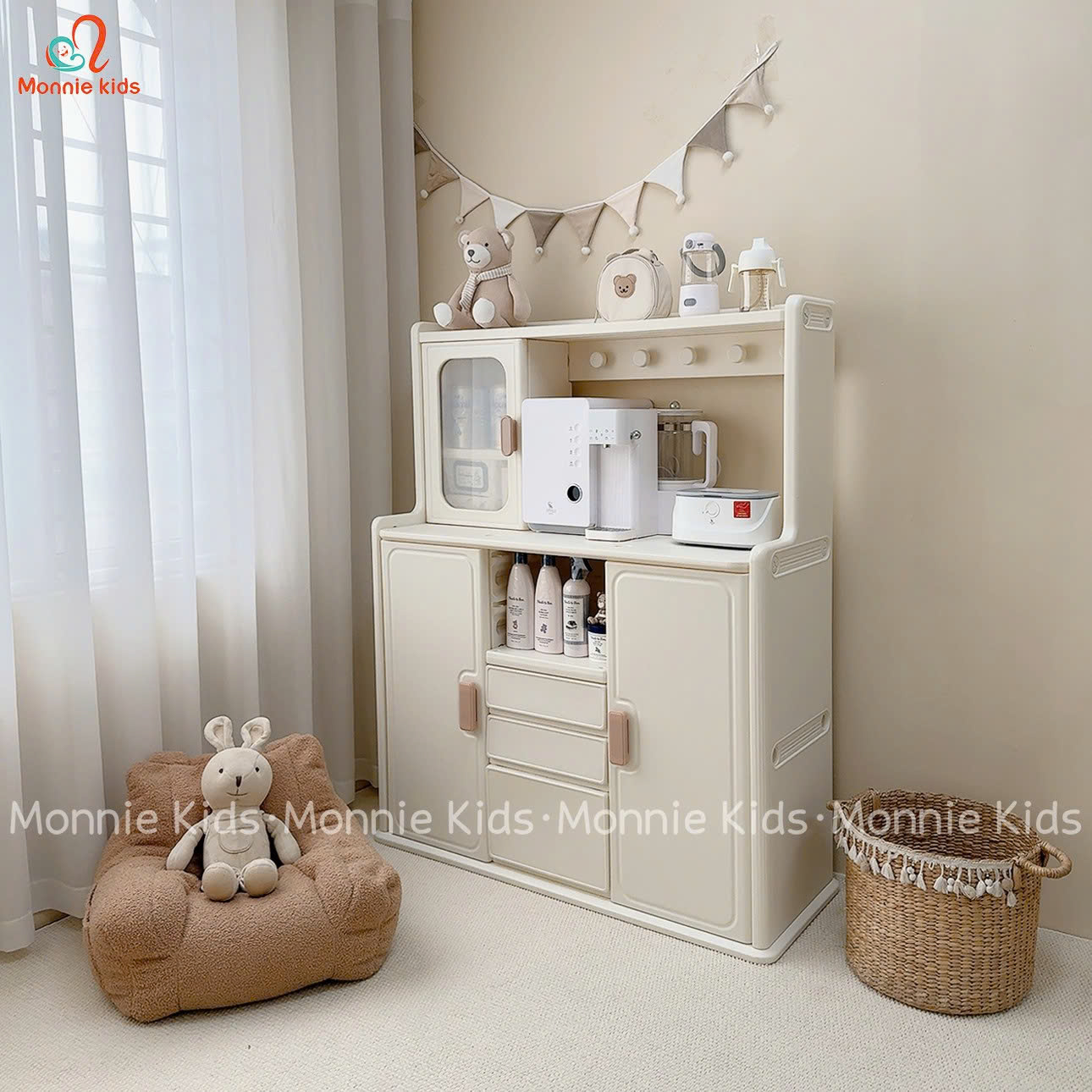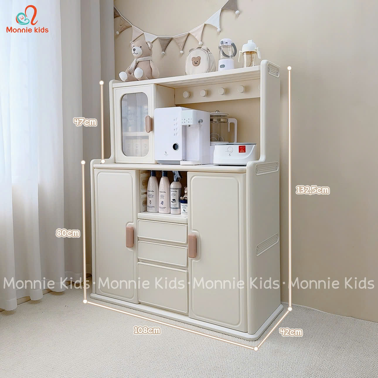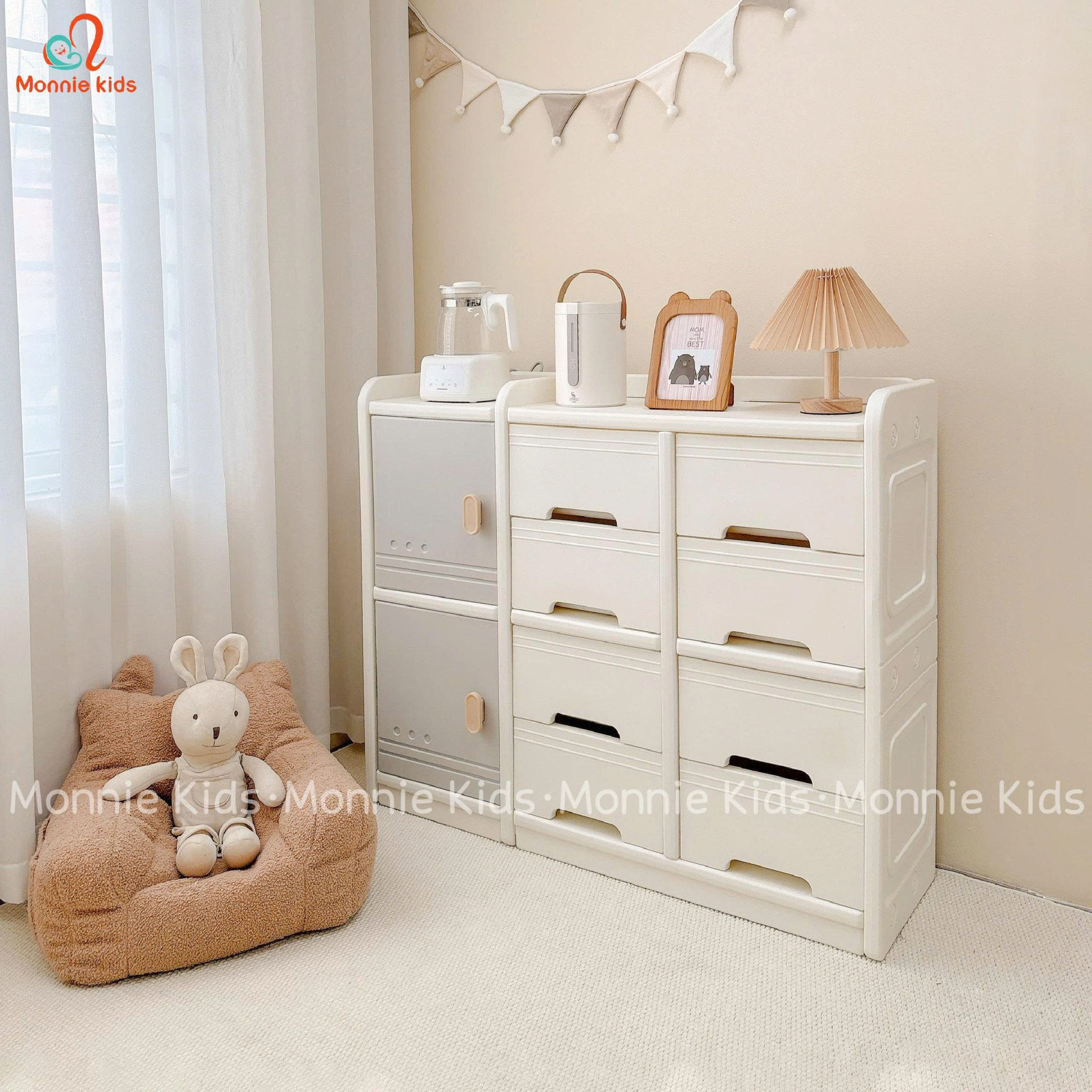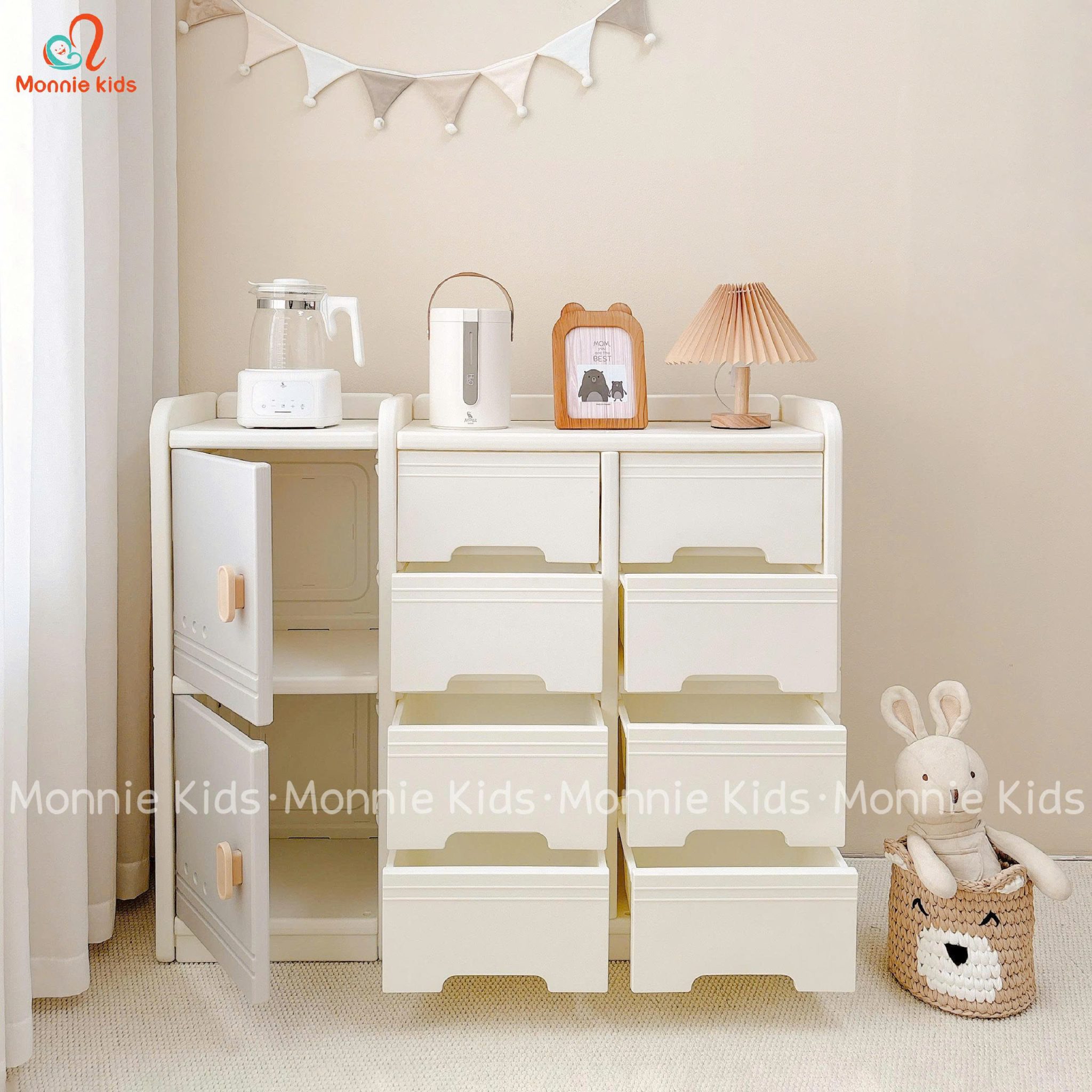 Tủ có kết cấu chắc chắn, bền bỉ, tiện dụng và an toàn với trẻ nhỏ.