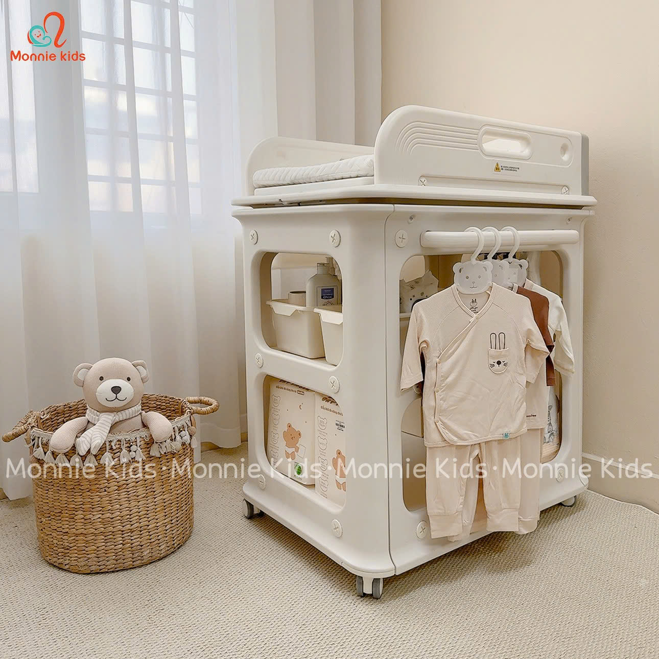 Tủ quần áo cho bé siêu xinh, phong cách Hàn Quốc với thiết kế tủ đựng đồ nhiều ngăn, đa năng với tone màu trắng xinh xắn.