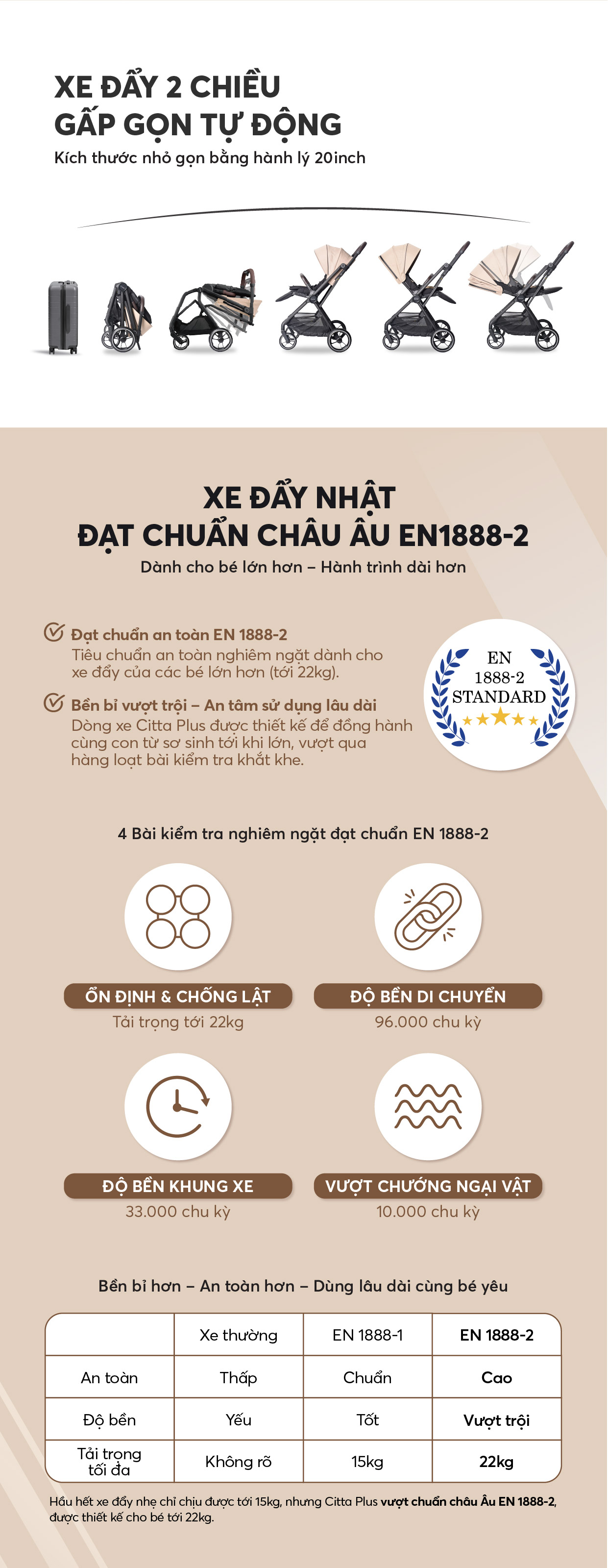 Xe đẩy 2 chiều Combi Citta Plus – An toàn, tiện lợi, gấp gọn thông minh